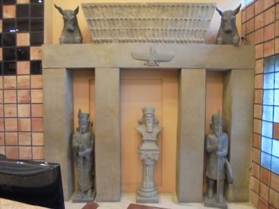 ホテルのロビーにはペルシャのものらしい神像がカウンターの後ろに3体並んでお