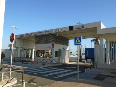 地中海北側乗り場アルヘシラス港から対岸アフリカ側のセウタ・タンジェなどへフェリーはゲートを通過してから埠頭の先へ徒歩で5分程度歩いたターミナルビルから出発します。チケット売場はこのターミナルビルに各フェリー会社のブースがあります。
