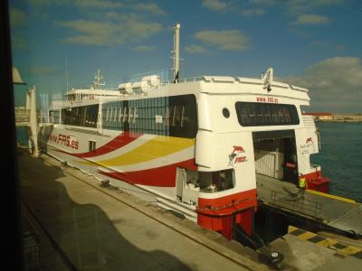 久しぶりにスペインでは初めて引っかかりました。時間がないので文句を言いに帰ってくることはないだろうという読みもあり、実際に私達がセキュリティを通って乗船すると同時にフェリーの渡し板が外されたのでうまくやられました。
