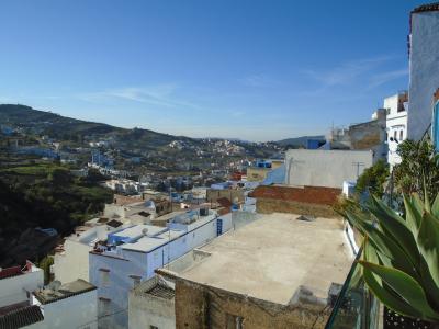 シャウエンへ向かう前日夜にティトアンに宿泊せず、シャウエンに向かうことにしたため、到着が夜になリ暗くなってからのホテル探しを避けようとエクスペディアで予約しました。シャウエン中心部への到着は18時30分だったのですでに薄暗く狭い道が続き斜面に立っており道が上下するシャウエンでは予約して正解でした。