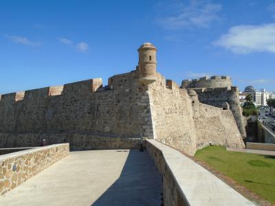 セウタ港から徒歩10分足らずで町の中心部に着くと、目の前に城郭が見えます。道路の向かい側にはバス停があり市内各地へのバスが停まり、モロッコ国境へのバスもここから乗れます。