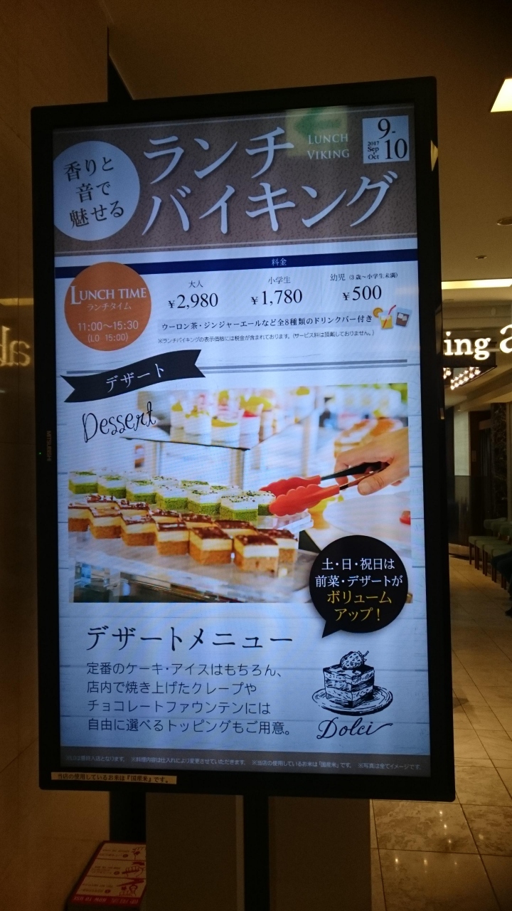 ホテルグランヴィア大阪の19階にあります。友達が某サイトで予約してくれて、11時半~13時迄、2500円でした。ステーキはコックさんが焼いてました。三回お代わりしました。お肉、魚、サラダ、パスタ、カレー、パン、デザート…etc、充実しています。食べたお皿も結構早く片付けてくれます。ちょっと遅刻したけど、約1時間半、すぐ経ちました。トングはこのご時世で一時間ごとに換えていますと、書いてありました。日曜日でしたが、ホテルなんでゆったりできました。