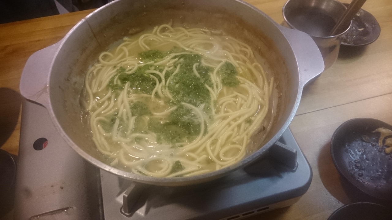 JR福島駅の近く。平日なのに混んでいました。予約していてよかったです。お通しの大根と鶏肉の煮込みからテンションは上がります。一品でホルモン焼き、バジルトマト、焼き餃子を注文。どれも美味しいです。メインのもつ鍋は白い出汁にしました。ニラいっぱいで美味しい出汁、噛めば噛む程に美味しいもつ。つくねも入れて最後はチャンポンで締めました。ウーロン茶はビックサイズです。3人で1人当たり約2800円。取り放題で高菜やモヤシのナムルとかありました。また、行きたいです。