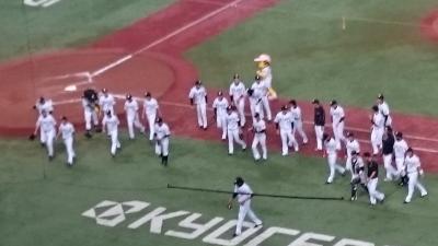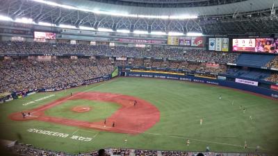 阪神タイガースvsヤクルトスワローズの試合を観に行ってきました。今日の気温は大阪38度。ドームは冷房がスゴイ効いてるわけではなく、うちわは絶対必要ですが、日光浴びないだけ全然ましです。高校生達には悪いですが、夏場は甲子園よりドームがありがたいです!! しかも、阪神タイガースの逆転勝ちで盛り上がりました。バックスクリーンへのホームランも見れて感動しました。席は内野上段席の一番上でちょっと高所でしたが、二人席だったのでくつろげました。ペットボトル持ち込みがダメなんです。それだけが面倒なところです。