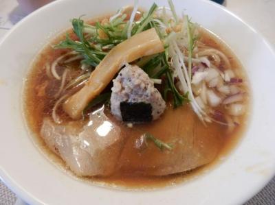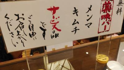大阪駅桜橋口から階段を下りた真下にあり。昔からあったそうですが、私は初来店。一緒に行った友人がつけ麺(880円・税込)がおすすめというので食べてみました。麺はつるつる感の中太麺でなんと、普通130gが無料で大盛260gにしてくれます。で、もちろん大盛にしましたが、かなりのボリュームでした。お汁は豚骨がきいてて、チャーシューが入っていて麺とよくあいます。あとトロトロ煮玉子と青菜もついてます。そして、驚きのメンマ&キムチが食べ放題!!ラーメンは他に色々種類がありました。