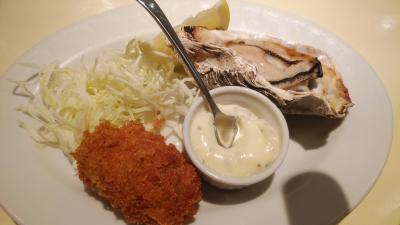 別のオイスターバーが半端なく並んでいたので、こちらはまだましかなあと思いましたが、1時間待ってやっと入れました。日曜日はランチといえども予約した方がいいんですね。。ちょっと張り込んで1880円のオイスターコースにしました。プラス200円でコーヒー付。生牡蠣の兵庫県室津産は粒が大きく食べ応えあり。友達もいくらでも食べれると言ってました。生牡蠣は計二個でしたが……。あと、フライ、素焼きの牡蠣が1個づつ、パン、サラダ、スープと日替わりのパスタです。パスタはもちろん牡蠣入ってました。店内おしゃれで楽しくランチ出来ました。待った甲斐あり。