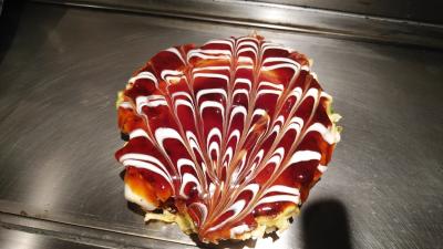 年末、いっぱいで入れなかったので予約してリベンジしました。当日予約だったのでラスト一席でしかもカウンター。テーブル席に変更できないか電話してみたけど無理でした。そんなに人気!?と期待度マックスで入店。やっぱりいっぱいの人で大根サラダは注文してすぐ出てきましたが、お好み焼きやオムそばはなかなか来ませんでした。オムそばはアルミ箔にのって出て来て、コテで切ってたらぐちゃぐちゃになりましたが、味は美味しかったです。お好みもエビやイカがしっかり入ってました。串は1本からオーダーできて、オクラやアボカドを1づつ頼みました。ウーロン茶1杯飲んで、5%クーポン券使って1人2000円程。安いけど、接客含めてまあまあかなあって感じです。