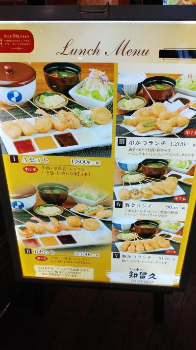 私は全然知らなかったんですが、老舗の名店で昔はお母さんとよく行っていた、美味しいからと誘ってくれました。ちょっと奮発して1800円のランチを注文。7本の串カツと御飯味噌汁、お漬け物、サラダです。7本のうち3本は旬の分です。ソースも5種類あって揚げたてを持ってきてくれて似合うソースの所においてくれます。7本は少ないかなと思ったけれど、鴨肉や白身魚ににしそとか、いくらがのったのもあり。海老は車海老でした。雰囲気も上品な感じでゆったり出来ます。また行きたいです!!