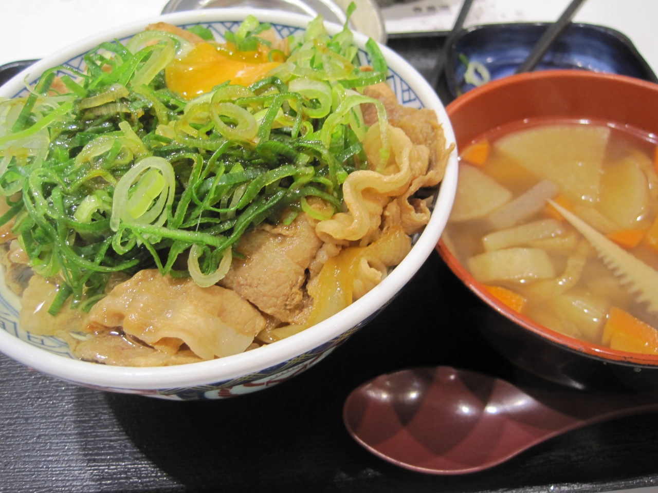 おなかが空いてて、一人で、お手軽価格でと私にとっては羽田で一番よかったお店です。安定のお味でやっぱりホッとしました。今回は豚ねぎ玉丼大盛りをたのみましたが、次回はぜひ、牛重を食べたいです。一緒にたのんだけんちん汁もよかったです。