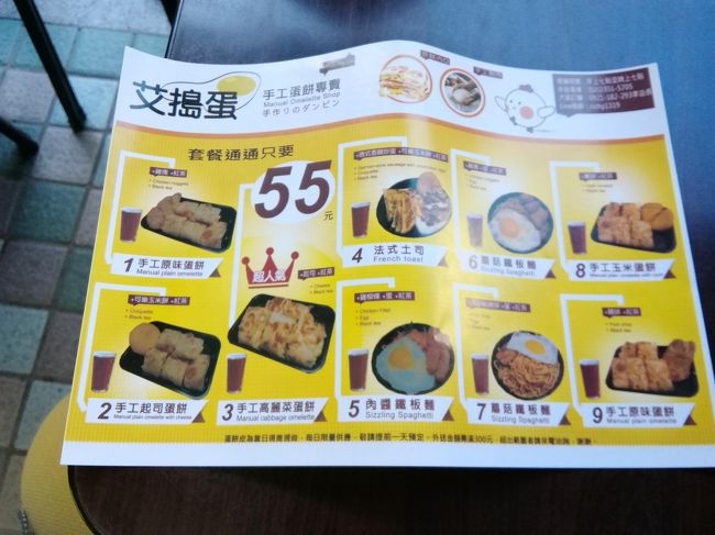 善導寺駅から華山市場へ向かって通りすぎて、にわとりのマークが看板のお店です。超人気と載っていた「高麗菜蛋餅」と豆漿にしました。60ドル。ドリンクが豆漿でなければ55ドルのセットもありました。台湾朝食定番の蛋餅(ダンピン)は外はカリカリなかはキャベツの味がちょうどよくおいしかったです。今度はチーズ味を食べてみたいです。お店の人やお客さんも皆いい人で楽しい時間でした。