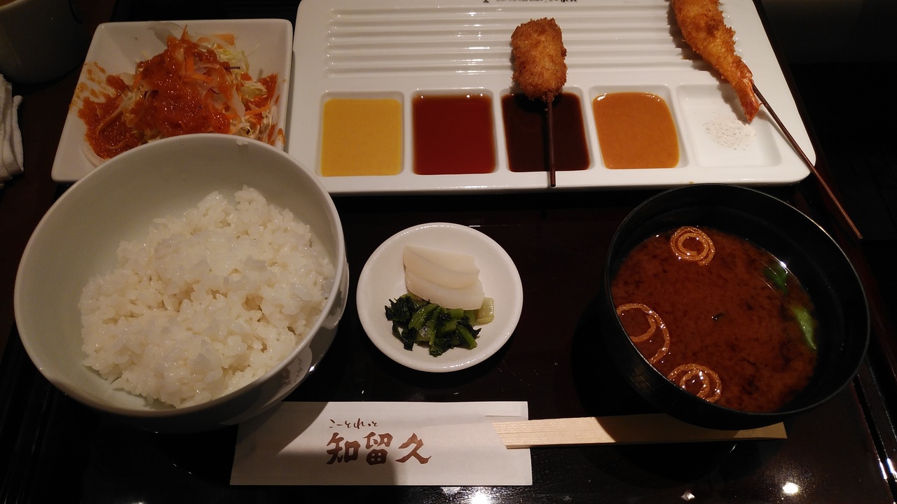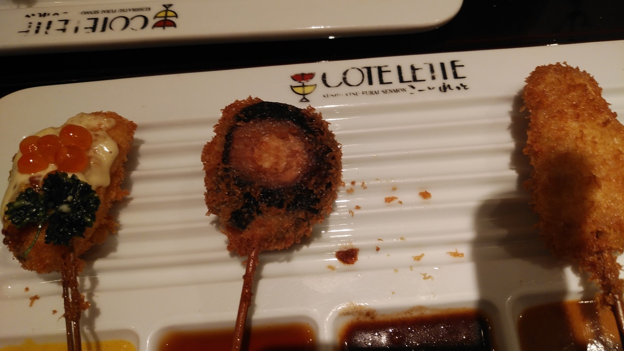 私は全然知らなかったんですが、老舗の名店で昔はお母さんとよく行っていた、美味しいからと誘ってくれました。ちょっと奮発して1800円のランチを注文。7本の串カツと御飯味噌汁、お漬け物、サラダです。7本のうち3本は旬の分です。ソースも5種類あって揚げたてを持ってきてくれて似合うソースの所においてくれます。7本は少ないかなと思ったけれど、鴨肉や白身魚ににしそとか、いくらがのったのもあり。海老は車海老でした。雰囲気も上品な感じでゆったり出来ます。また行きたいです!!