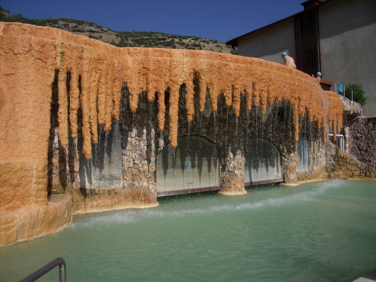 また、敷地内の屋外にある水着着用の天然温泉・大滝の様に流れ落ちる大きな混浴場は