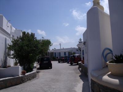 ミコノス島は断崖の上にホテルがへばり付く様に建てられていて