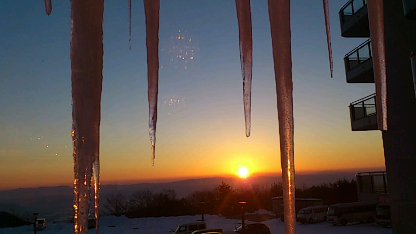 まず驚いたのは軒下から地面に着くくらいの氷柱の大きさ