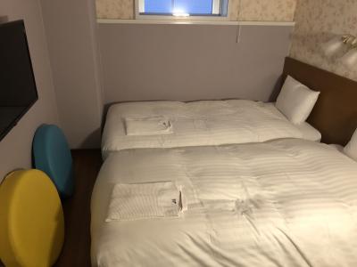 ダブルベットとソファーとカウンターのような机と椅が細長い部屋に余裕なく置かれていますが、大きな開放的な窓がありますので、圧迫感はなかったです。