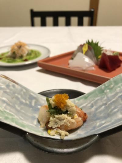 夕食は部屋食で、2~3回に分けて配膳にこられました。おいしいお料理ですが、食べきれないほどの量でした。