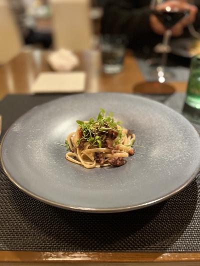 パスタは2種類出てきて、お魚料理とお肉料理の両方が頂けます。器もとても素敵した。