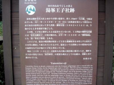 - 湯の峰温泉の公衆浴場付属のつぼ湯東屋裏側から大日越ルートが始まる。それを登るとすぐに湯峯王子跡がある。小さな神社があり、古道に神社旗あり。