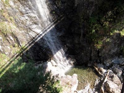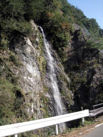 - ワイルドなトンネルをいくつも抜けて突然に現れる断崖落差20メートルの滝。向かい側は北山川の渓谷。滝つぼには透明な清い水。インパクト強い。