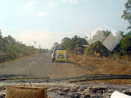 パクセーのサバイディー2のボーラベン高原1日ツアーに参加した帰りの道中で地雷除去支援団体の交通規制に出会った。