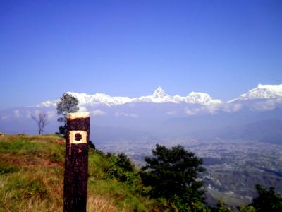 - 西はダウラギリ、東はマナスルまで6000m〜8000mの山々がポカラの街の上に浮んで見える。素晴らしい景観が楽しめる。