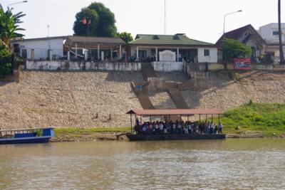 - メコンの渡し舟をタイ側で降りて、振り返ればソコに素晴らしい景観が見えるので、利便性は抜群だ。
