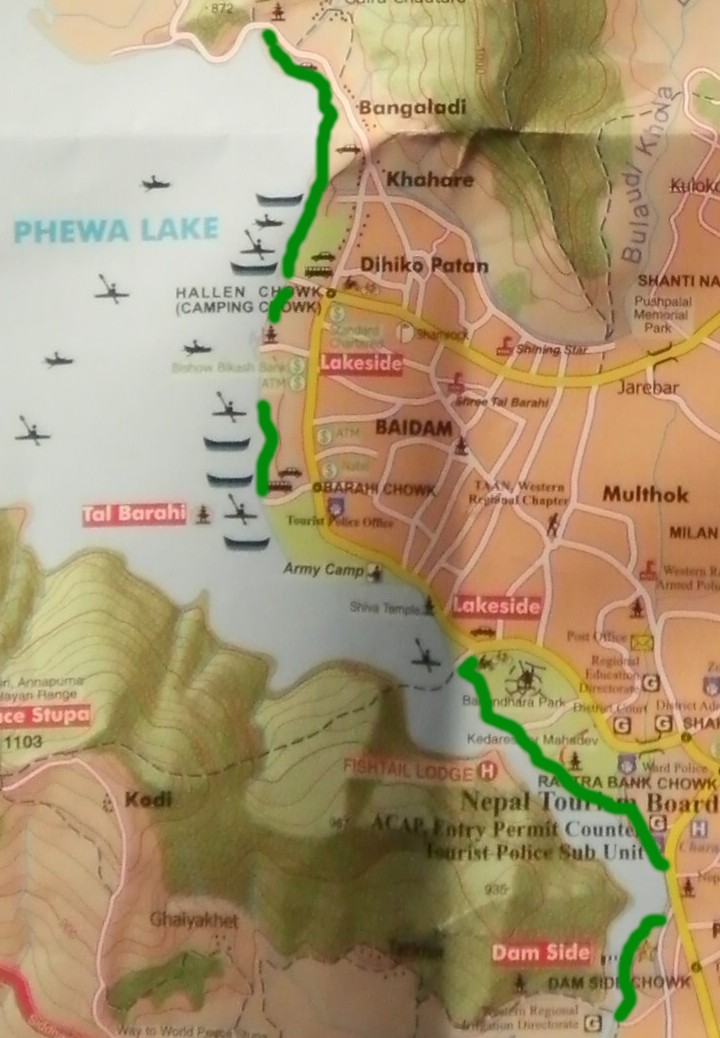 - 湖を見ながらブラブラ散歩気分で歩き、疲れれば途中でお茶もできる。ポカラの楽しみ方ではコストパフォーマンスは非常に高い。