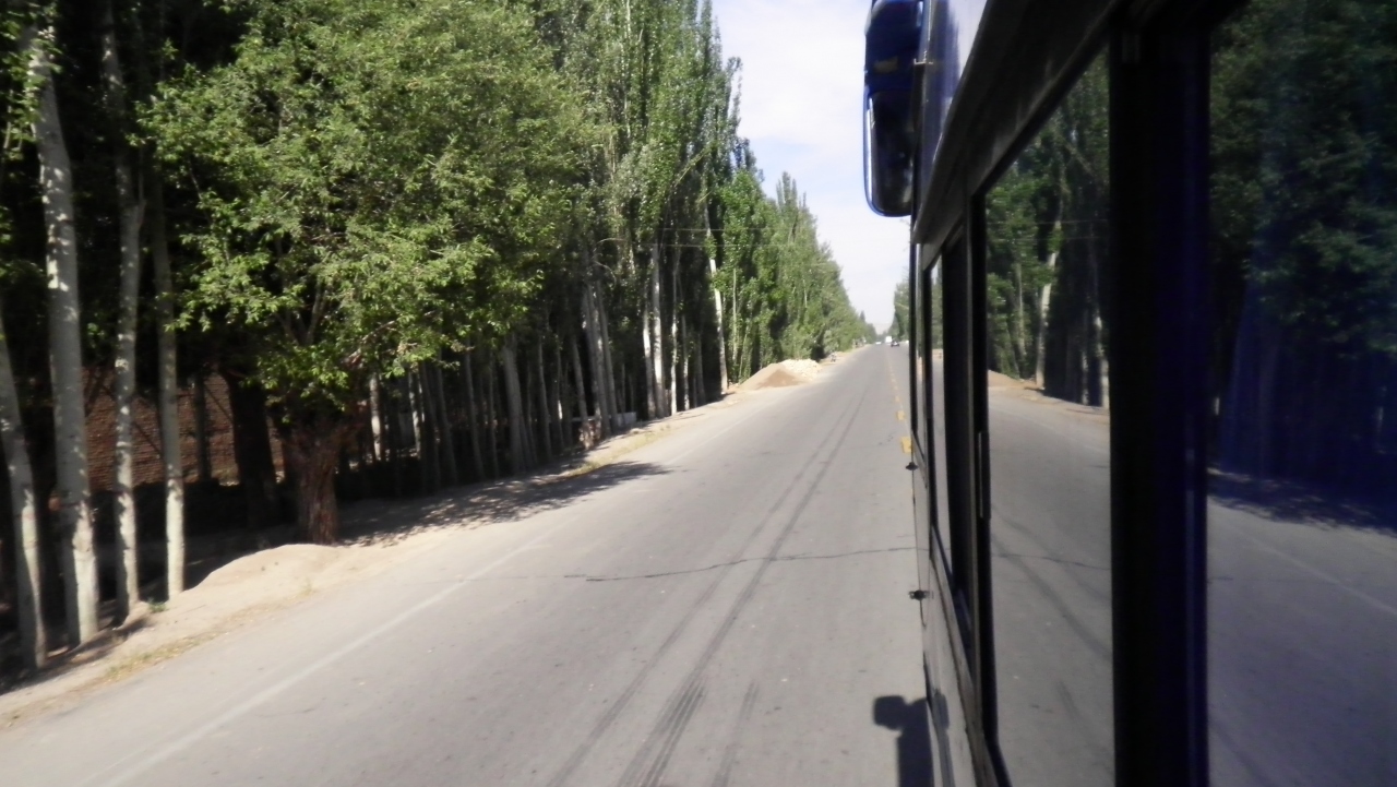 カシュガル⇒イルケシュタム峠までのバス車窓に映る見事なポプラ並木