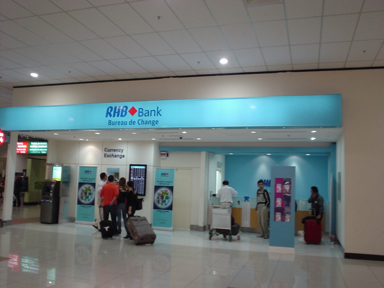 到着時、パスポートコントロールが終わって進むとRHB銀行の両替所があります。