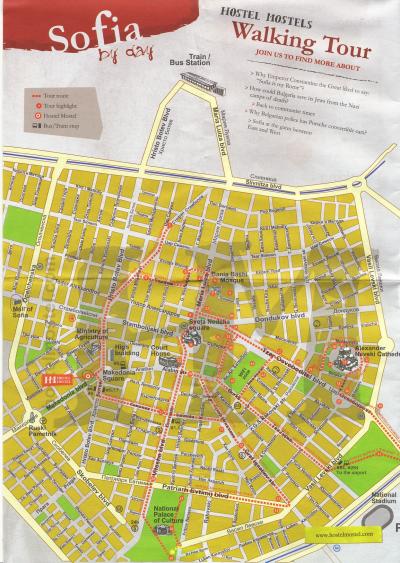 ソフィアのホステル・モステルではチェックインする際に必ずこの地図が出てきます。
