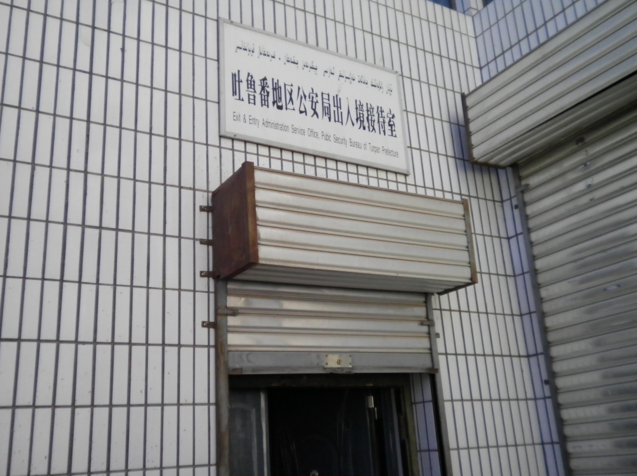 - 地区公安局=トルファン警察本部なので、建物は立派。出入境接待室は警察本部建物に向かって左側の奥にある建物内。