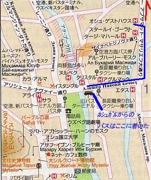 そこはオシュのバザール=ジェイマ・バザールのミニ・バスなどが発着する旧バスステーションすぐそばだった。- 旅行時期