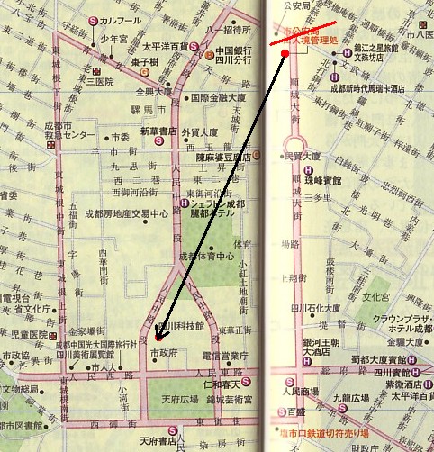 ノービザからのビザ申請所は、2012年5月から天府広場後ろの四川科技館の西側の出入境接待中心に移動