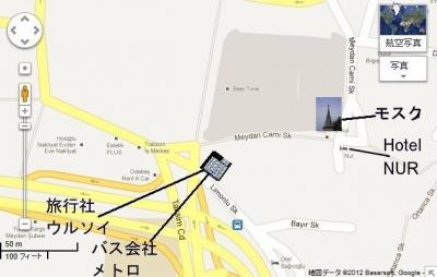 歩き方にシュメラ僧院への行き方の記述に、ウルソイでバス手配云々とあったが、そのウルソイのロケーションをご紹介します。