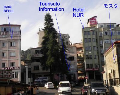 - 街の中心=アタチュルク広場近く。ホテル・ヌールとホテル・ベンリーの間。