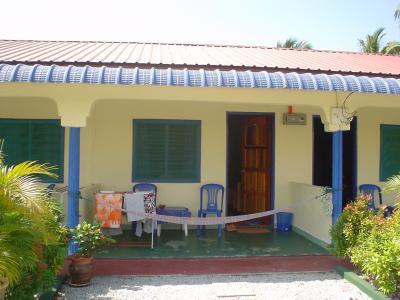 - バンガロータイプの部屋。ベランダもあり、ハンモックもつれる。簡素な造りだが、南の島ではそれで十分。