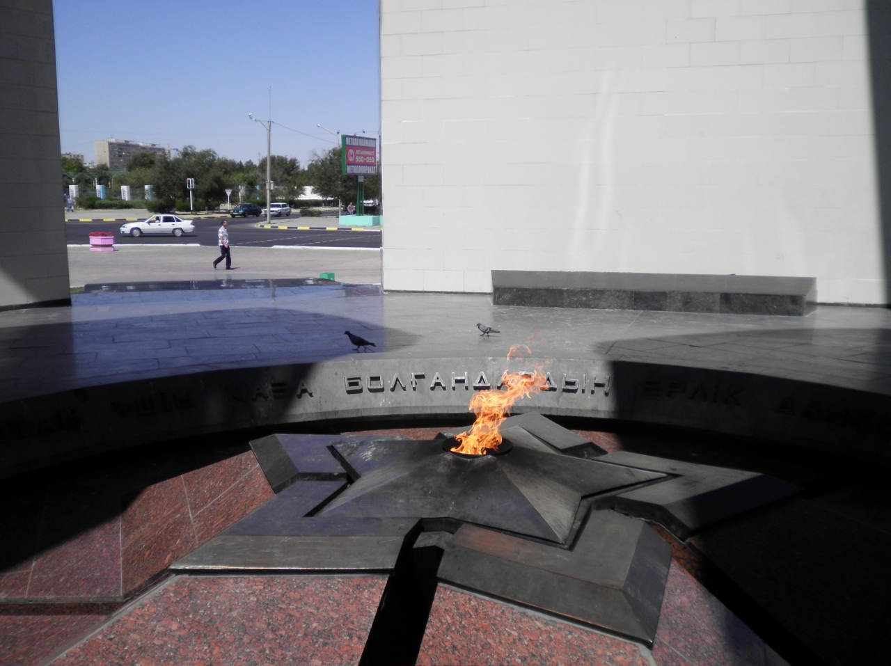 5本の曲がった柱とそれらに囲まれた半ドームの中に永久の炎が燃えている。- 旅行時期