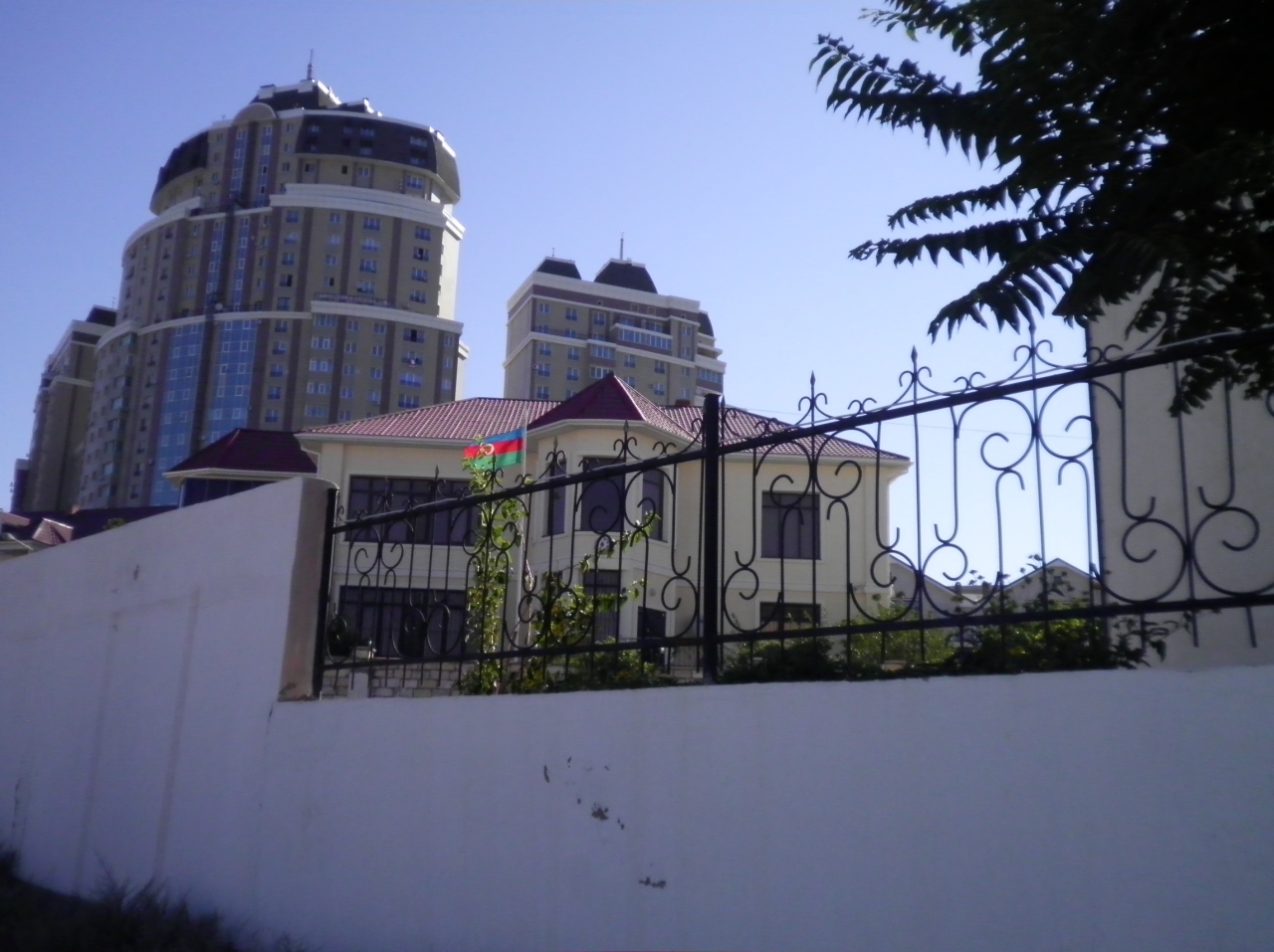 - ネイビーブルーのカスピ海を見下ろす高台にあるので経過は素晴らしい。領事館は大きな邸宅といった感じ。