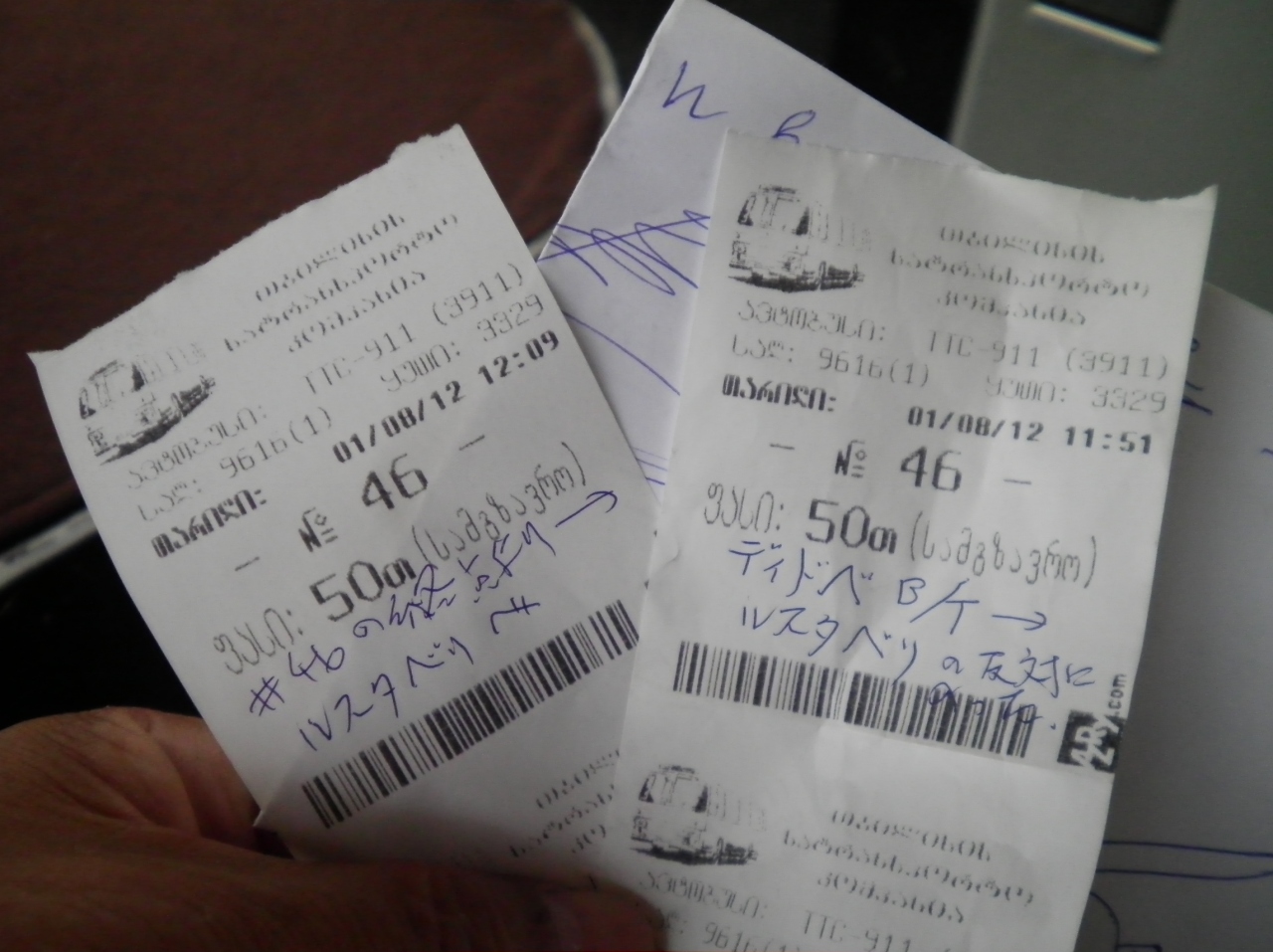 - 市内バス46番でルスタヴェリからディドベ・バスステーションへ、1ラリ(約50円)。コストパフォーマンス100%。