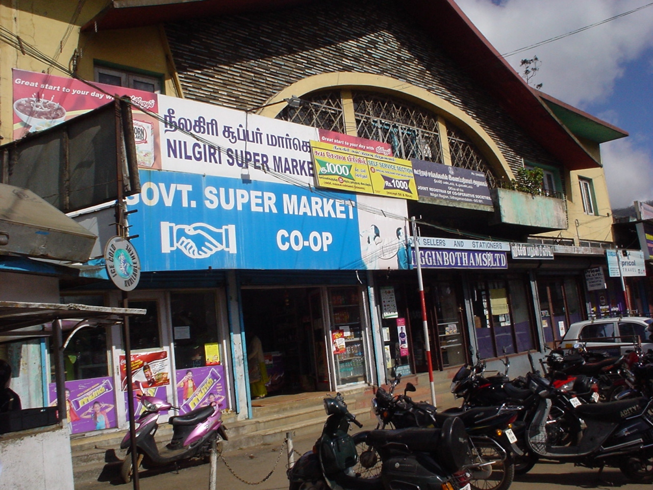 - スーパーというよりお土産品売り場。ニルギリ高原特産のお茶やトダ族の手ぬぐいや工芸品などが並べられている。自分で選んでカゴに入れてキャッシャー