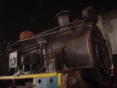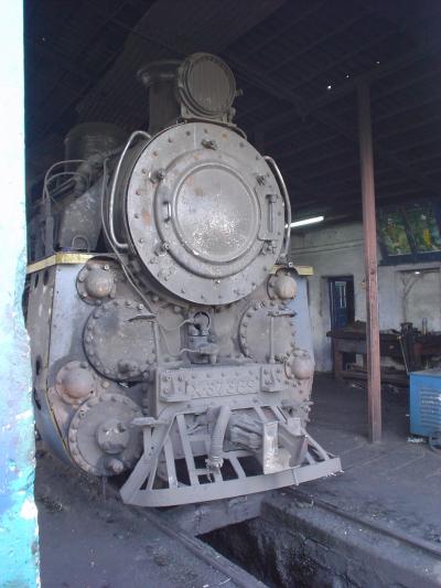 - ワレワレが行った時は山崩れでミニトレインは不通だったので、訪れる人は殆ど無かった。お陰で駅舎のヨコに置かれて修理中の蒸気機関車を存分に見学。