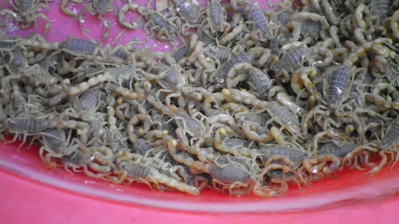 露天ではあるが、洗面器一杯に売っているサソリには驚いた。