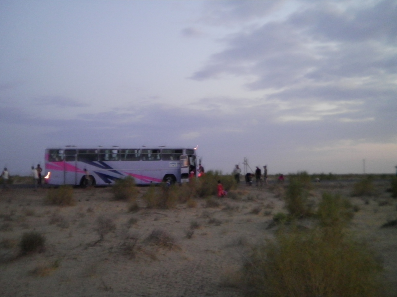 - 片道1300円、1泊2日、砂漠辺りからヌクス方面は地獄の3丁目みたいなロード。ところが事故も無く目的地に着くのが不思議だ。