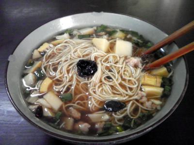 - 日本のソバのような面で具沢山。アッサリ味でウマイ。