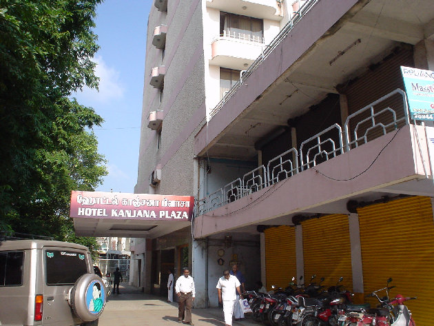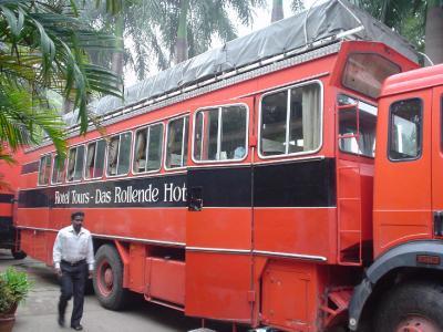 - 世界文化遺産のあるダラシュラムのホテル・オリエンタル・タワーの庭に駐車していた。ホテルに泊まりたい人は泊まる、バスで寝たいヒトはバスでと自由