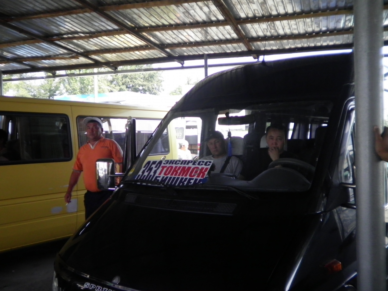 ビシュケクの東バスターミナルに行けば、行き先を書いたマルシュルートカが溜まっている。