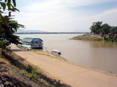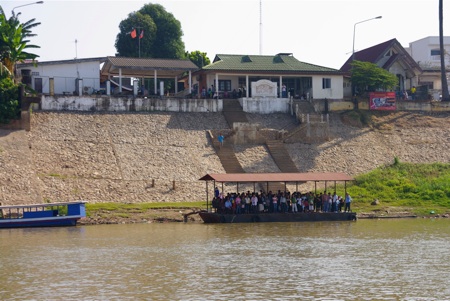 - ちょっと5分で他国に行ける。小さなボートに乗るのもスリル一杯満点。タイのビザ切れ前にメコンを渡れば、また2週間滞在できる。今では珍しい船着場