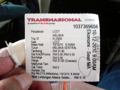 それらのバスのうち、「TRANSNASIONAL」社のバスがマラッカ行きです。