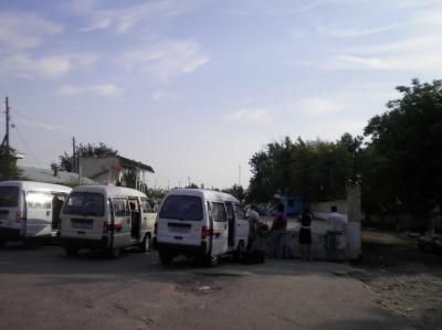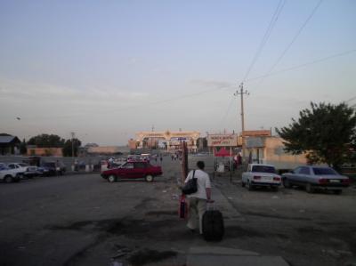 - シムケント駅からマルシュルートカで南に約2時間でウズベキスタンとの国境の町、ジベック・ジョリに着く。マルシュ降りると国境ゲートが見える。