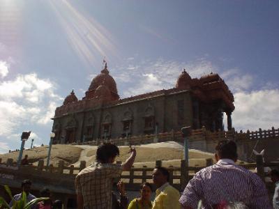インドの有名な哲学者(ヒンズー教のお坊さん)のヴィヴェーカナンダが瞑想した、海中のヴィヴェーカナンダ岩記念堂